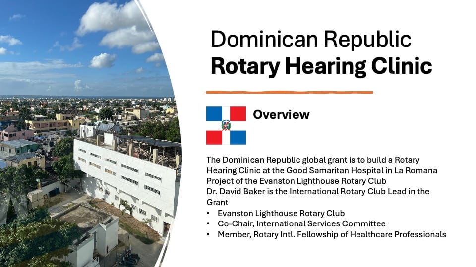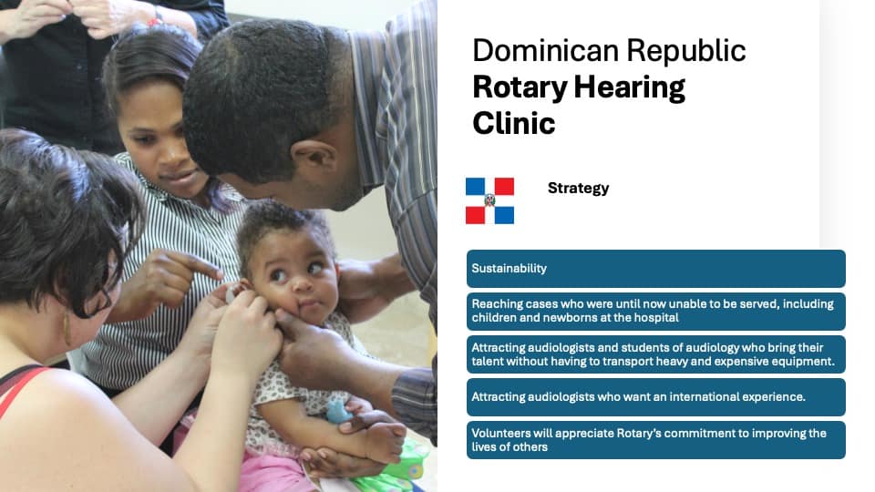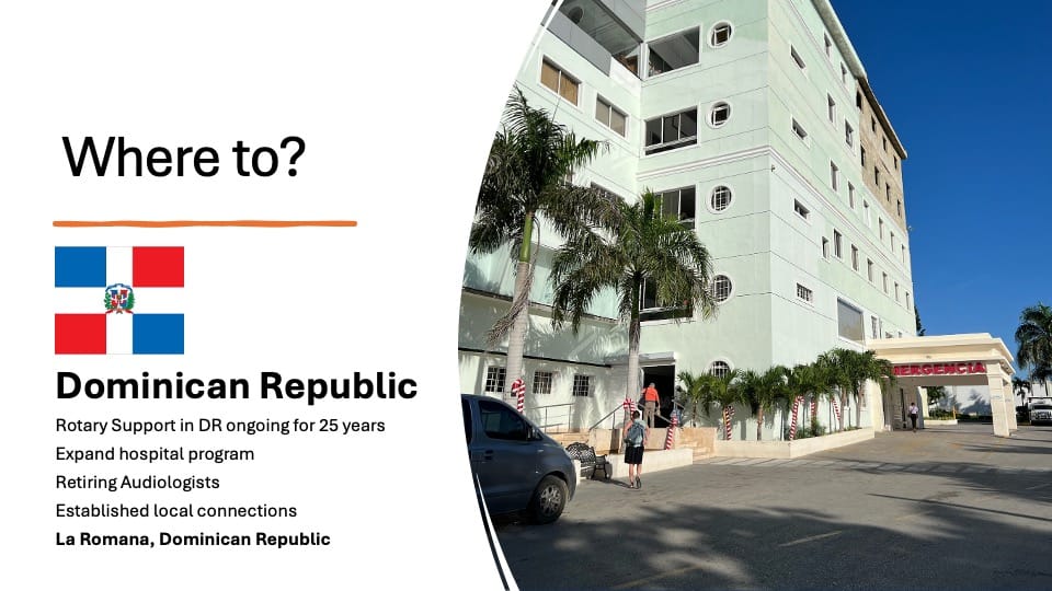 I am currently working with the International Committee to partner with other Rotary Clubs and Rotary International to set up a Rotary Hearing Clinic in La Romana in the Domincan Republic. Sunrise Rotary is the main local sponsor with help from the Ogopogo Club.